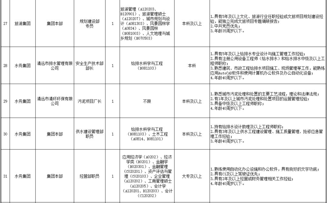 為進(jìn)一步加強(qiáng)清遠(yuǎn)市屬國有企業(yè)人才隊(duì)伍建設(shè),根據(jù)企業(yè)經(jīng)營發(fā)展需要,按照“公開、平等、競爭、擇優(yōu)”的原則,公開招聘市屬國有企業(yè)員工38人,誠意邀請(qǐng)符合條件的人員報(bào)名應(yīng)聘,F(xiàn)將有關(guān)事項(xiàng)公告如下:
